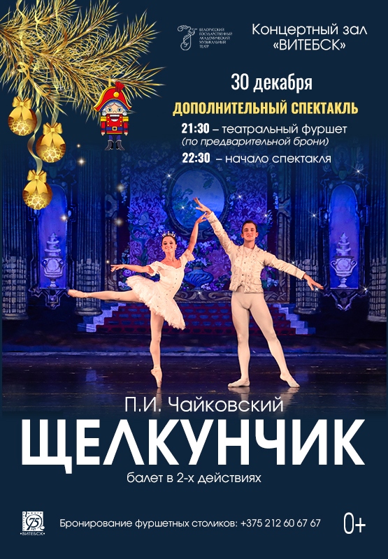 за час до и после спектакля, а также во время антракта, помимо работы буфета, можно посетить праздничный предновогодний фуршет. Забронировать столики можно по телефону: +375 212 60-67-67.