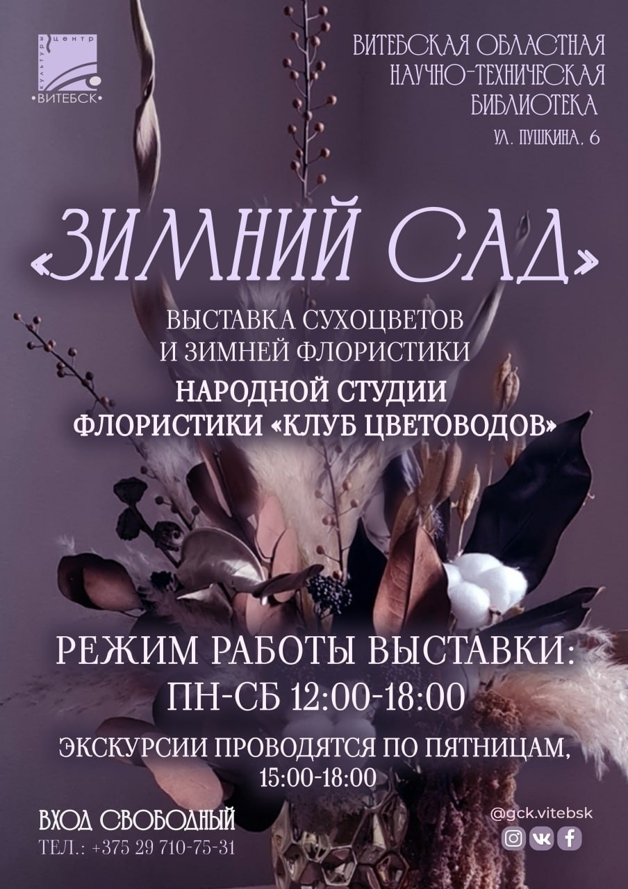 За окном морозный узор и белоснежная тишина. Но стоит переступить порог Витебской научно-технической библиотеки, как попадаешь в иное пространство – тёплое, живое, наполненное цветом и летними воспоминаниями. Здесь, среди стеллажей с книгами, распустился волшебный «ЗИМНИЙ САД».